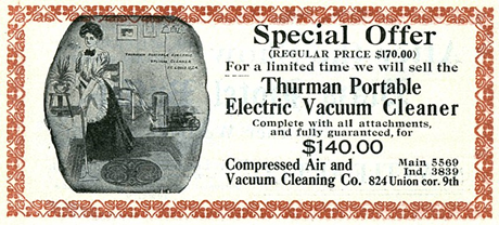 1907년, 미국 오하이오주의 한 백화점에서 일하던 제임스 스팽글러는 매일 빗자루로 바닥을 청소해야 했다. 하지만 빗자루를 사용할 때마다 먼지가 날려, 그의 기관지에 영향을 주었고 기침을 멈출 수 없었다.