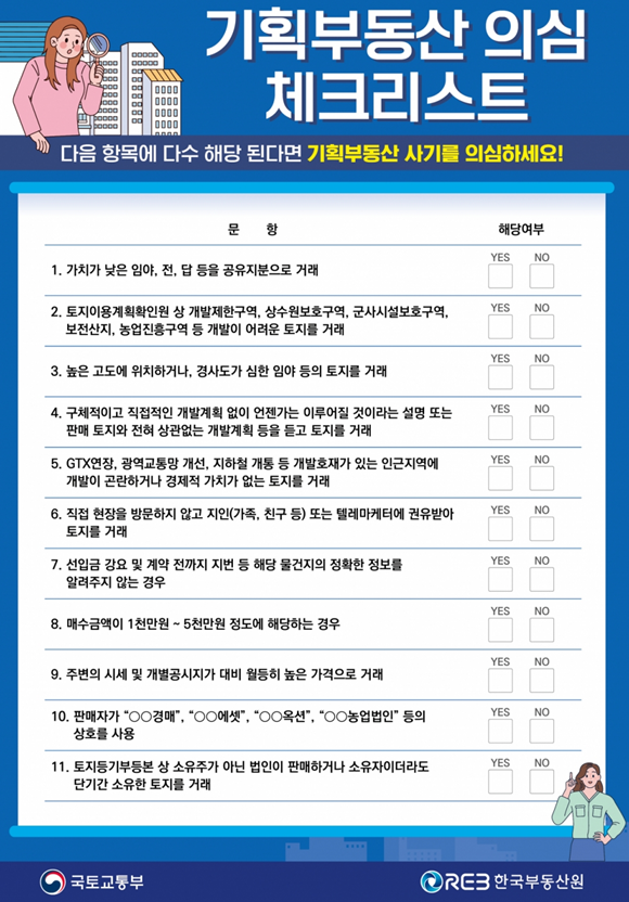 국토교통부에서 제공한 자료에 따르면 기획부동산 사기는 다음과 같이 3가지 유형으로 정리될 수 있다.