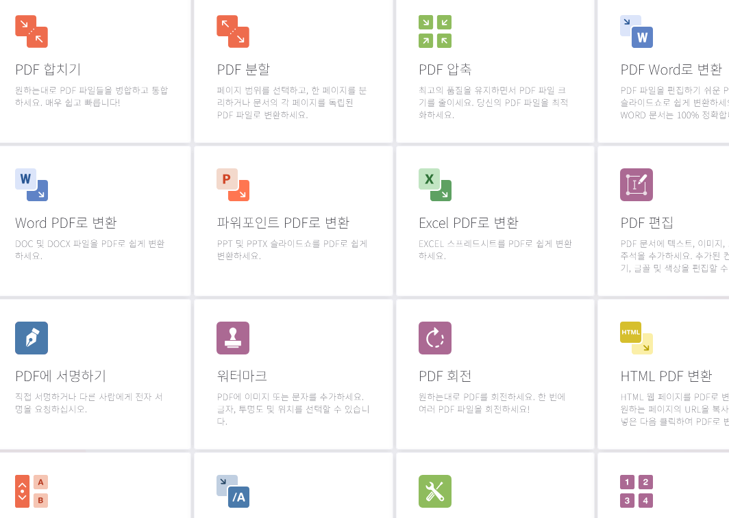 ◎ 참고로 iLovePDF 메인화면에서는 다음과 같은 여러 다양한 기능을 볼 수 있습니다. 이중 무료로 제공되는 기능도 많다고 하니 필요하시면 한번 테스트 해 보세요.