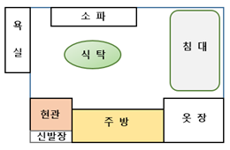 방과 주방 사이에 중문을 둔 형태로 음식 냄새가 방으로 유입되는 것을 어느 정도 차단할 수 있다. 물론 아파트나 일반 단독주택처럼 환기가 원활한 구조는 아니기 때문에 냄새로부터 완전히 자유로울 수는 없다. 따라서 이런 원룸을 선택할 때는 주방 창문이나 후드의 존재 여부를 잘 살펴보아야 한다.