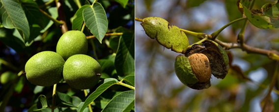 우리가 시장에서 만나는 호두는 단단한 껍질에 싸여 있어 겉보기엔 전형적인 견과류처럼 보인다. 그러나 막상 호두가 나무에 달려 있는 모습을 보면 그 외형이 좀 달라보인다. 호두는 녹색의 살지고 섬유질이 많은 외피에 싸여 있다. 그러나 열매가 익어가면 이 외피는 자연스럽게 갈라져 그 안에 '견과처럼 생긴' 부분이 드러난다.