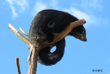 '빈투롱(Binturong)'이라는 이름부터 생소하다. 어감도 독특하고, 그 이름만으론 정체를 쉽게 떠올릴 수도 없다. 곰고양이라는 뜻으로 알려진 이 이름은 말레이 지역 언어에서 유래했지만, 정확한 어원은 지금도 분명하지 않다. 그만큼 빈투롱이라는 동물 자체가 우리에게 생소하고, 또 정의 내리기 어려운 존재다.