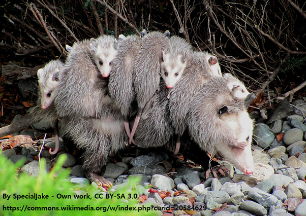 물론, 주머니가 없이 처음부터 외부에 노출된 새끼는 위험을 감수해야 한다. 어미 입장에서 보면 손실은 불가피하고, 그래서 일까, 주머니쥐는 다른 유대류의 동물보다 더 많은 수의 새끼를 낳는다.