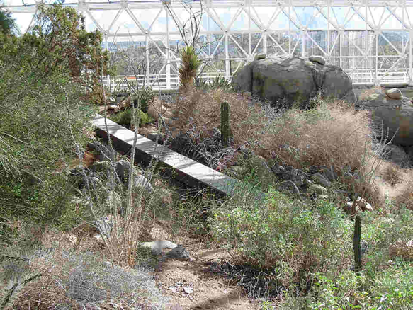 바이오스피어 2는 1991년에 개장된 거대한 밀폐형 생태계 실험시설로, 지구의 다양한 생물권을 축소해 재현한 공간이었다. 이 안에는 열대우림, 사막, 해양 등 여러 생물권(biome)이 인공적으로 유지되고 있었다. 그중 ‘안개 사막(Fog Desert)’ 구역에서는 선인장과 관목, 그리고 몇 종의 나무들이 자라고 있었다.