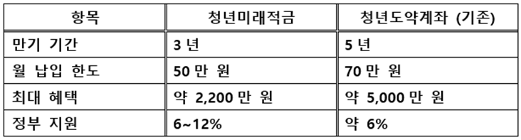 청년미래적금과 기존 청년도약계좌의 주요 차이는 다음과 같다.